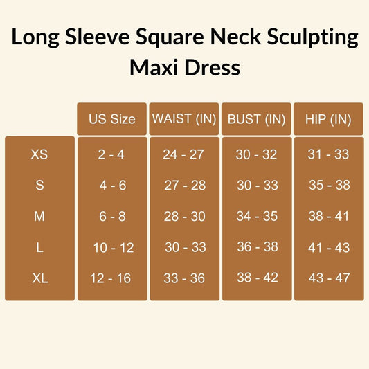 Robe Maxi Sculptante à Manches Longues et Col Carré